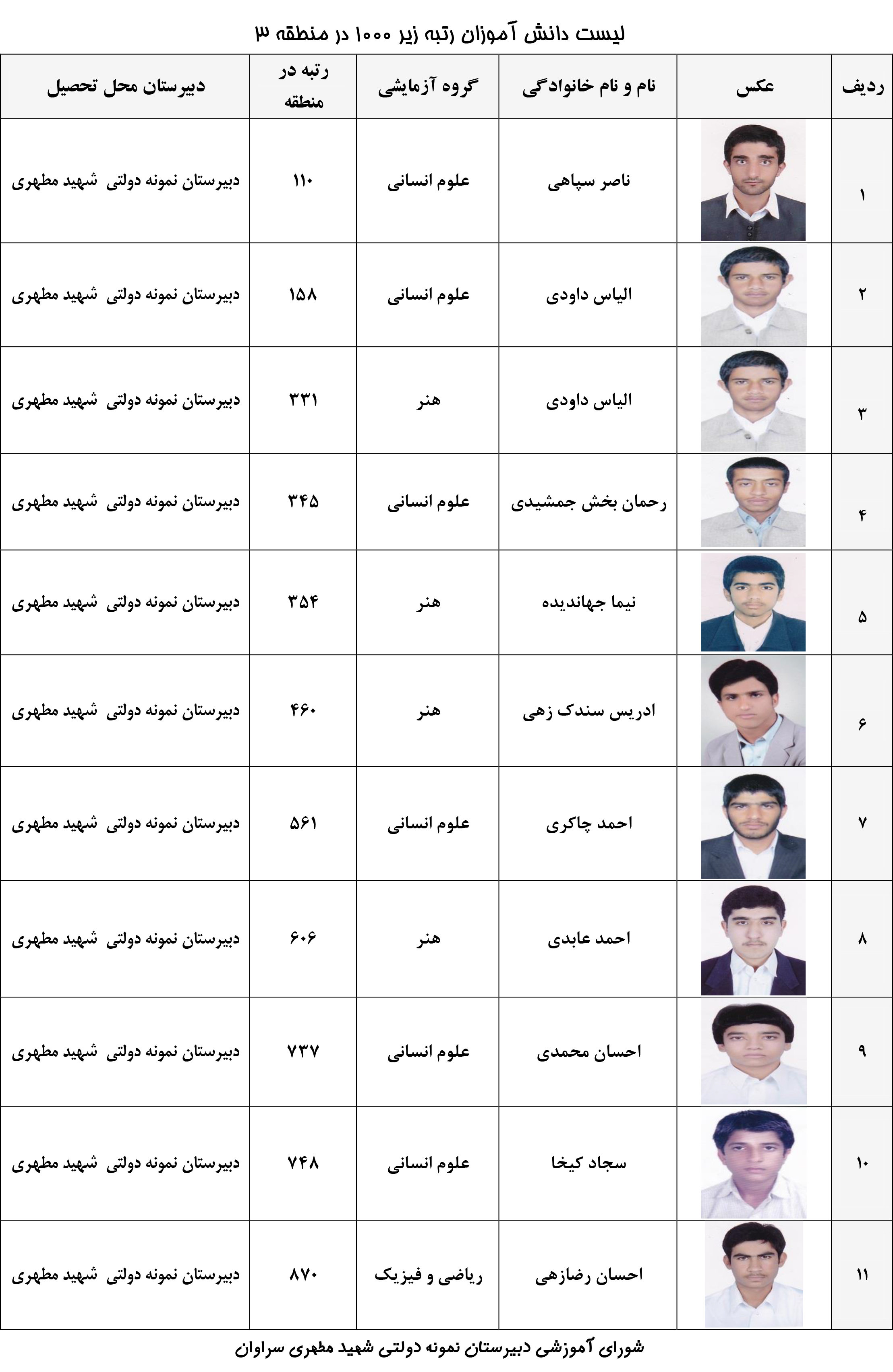 اسامی پذیرفته شدگان دانشگاهی، مدرسه عترت سراوان